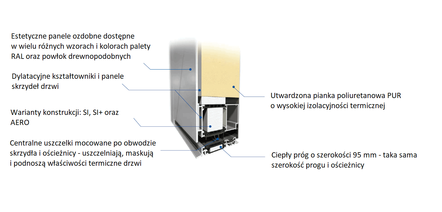 UD do 0,44 W/m2K (dla MB-104 Passive Aero przy panelu 95 mm)